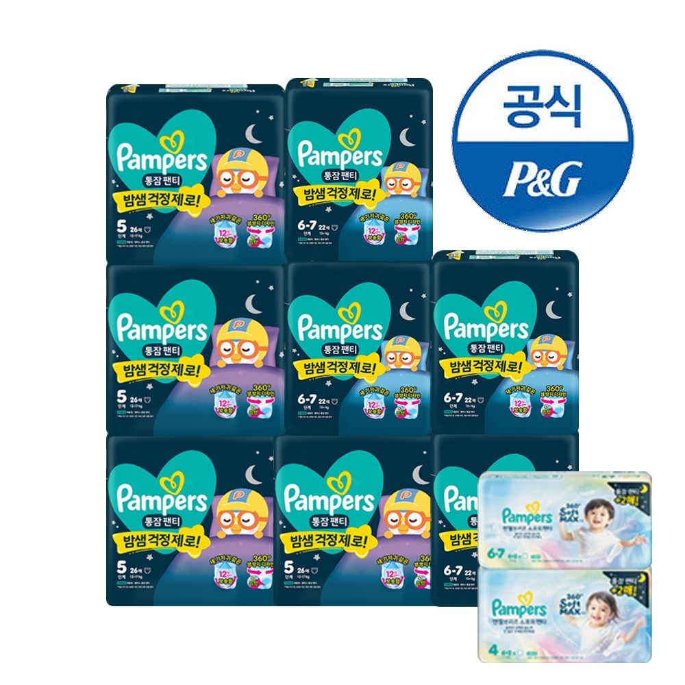2026 통잠팬티 밤기저귀 5단계 26매x8팩 (2박스) + 체험팩 2팩증정