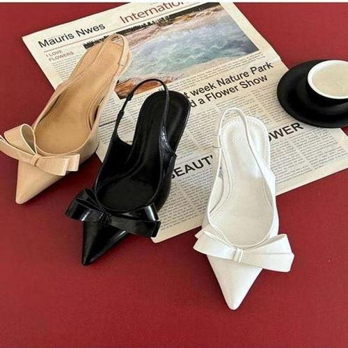 여성 여름 슬링백 로우힐 리본장식 스틸레토 구두