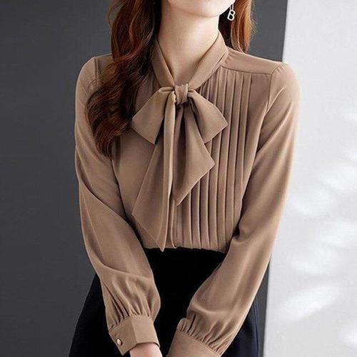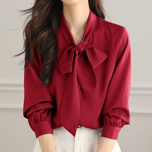 [옷자락]여성 리본넥 셔링 퍼프 가을 하객룩 블라우스
