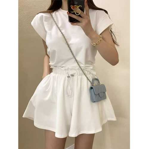 슈팅스타 / 캐주얼 반팔 백리본 밴딩 3부 반바지 투피스 세트