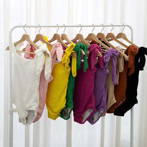 미즈큐즈 / 링클 스퀘어넥 숄더 어깨 리본 모노키니 비키니 수영