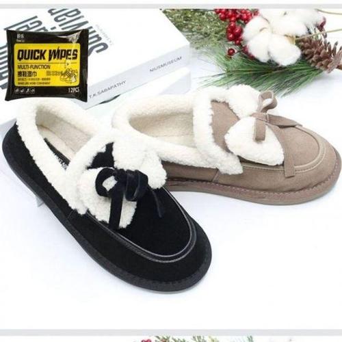 [에이치플러스몰]여성 리본 캐주얼 털 슬립온 필수템 방한화 소가죽 겨