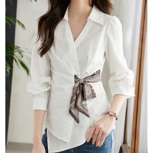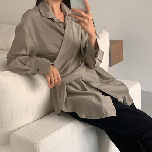 [신상오픈런]여자 하객룩 루즈핏 레이어드 랩 리본 셔츠 블라우스 (42356693)