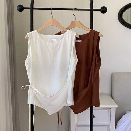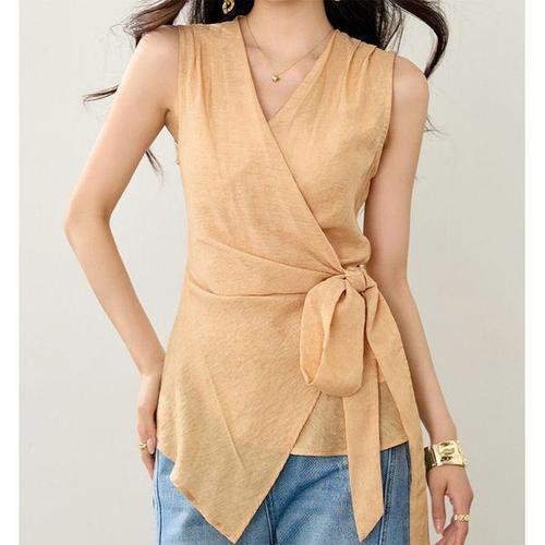 [신상오픈런]여자 여름 레이어드 랩 리본끈 핀턱 민소매 블라우스 (39383300)