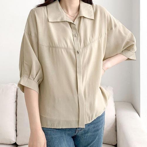 [신상오픈런]여성 버튼 카라넥 퍼프 소매 오버핏 펀칭 리본 셔츠 (39114982)
