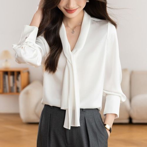 비침 없는 원단, 세련된 리본셔츠로 자신감 있는 스타일을 완성하세요.