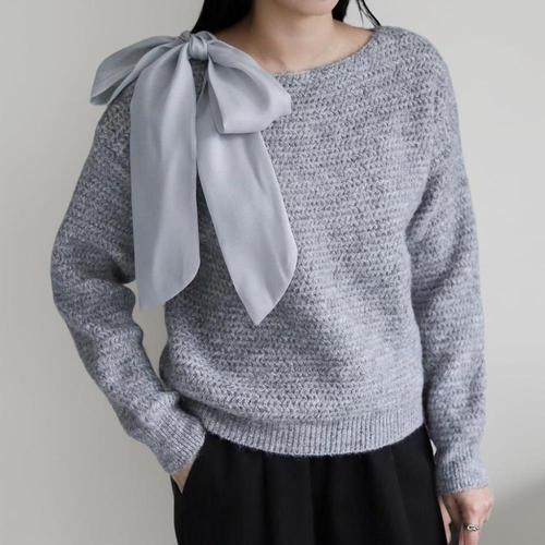 [옷자락] 여자 가을 겨울 하객룩 리본 스카프 보트넥 부클 니트