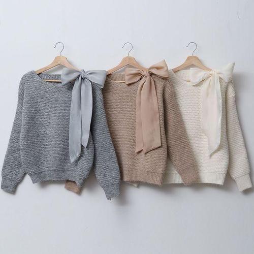 [신상오픈런]여자 가을 겨울 하객룩 리본 스카프 보트넥 부클 니트