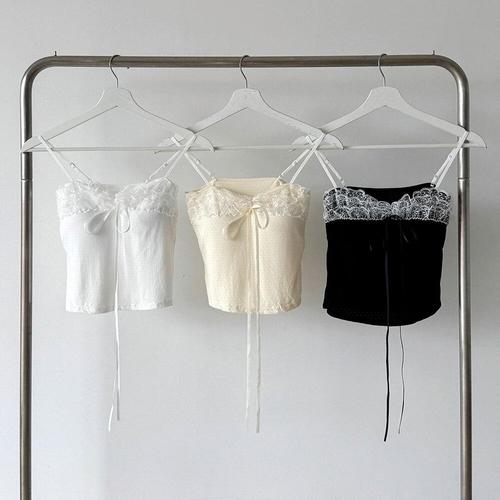 [옷자락]여성 페스티벌 레이스 리본 크롭 슬림 나시