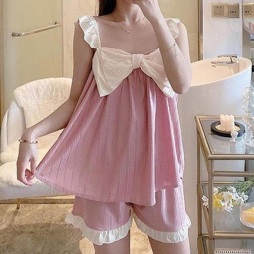 [셀러허브_여성트랜드패션]ONM 하운드투스 파자마세트 리본 나시 여름잠옷 홈웨어