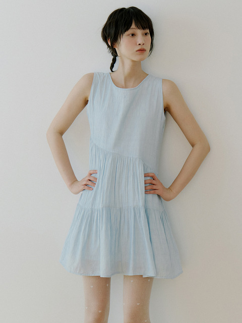 [리올그] 슬리브리스 스모크 원피스 베이비 블루