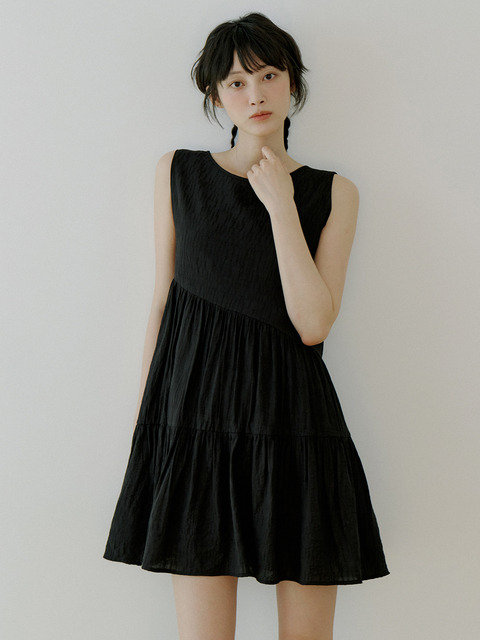 [리올그] 슬리브리스 벌룬 미니 원피스 블랙