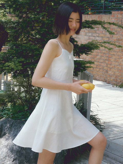 [리올그] 리본 레이스 슬리브리스 미니 원피스 화이트