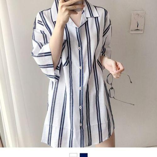 [에이치플러스몰]리조트룩 여자스트라이프남방 오버핏