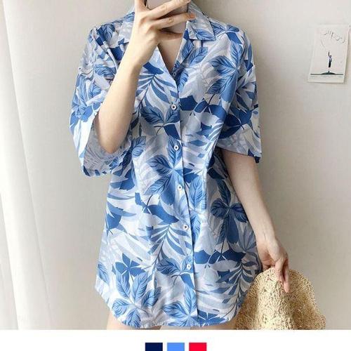 [에이치플러스몰]리조트룩 커플남방 오버핏