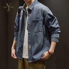 ANYOU 남성 데님셔츠 캐주얼남성 긴팔 셔츠 루즈핏 데님 코트
