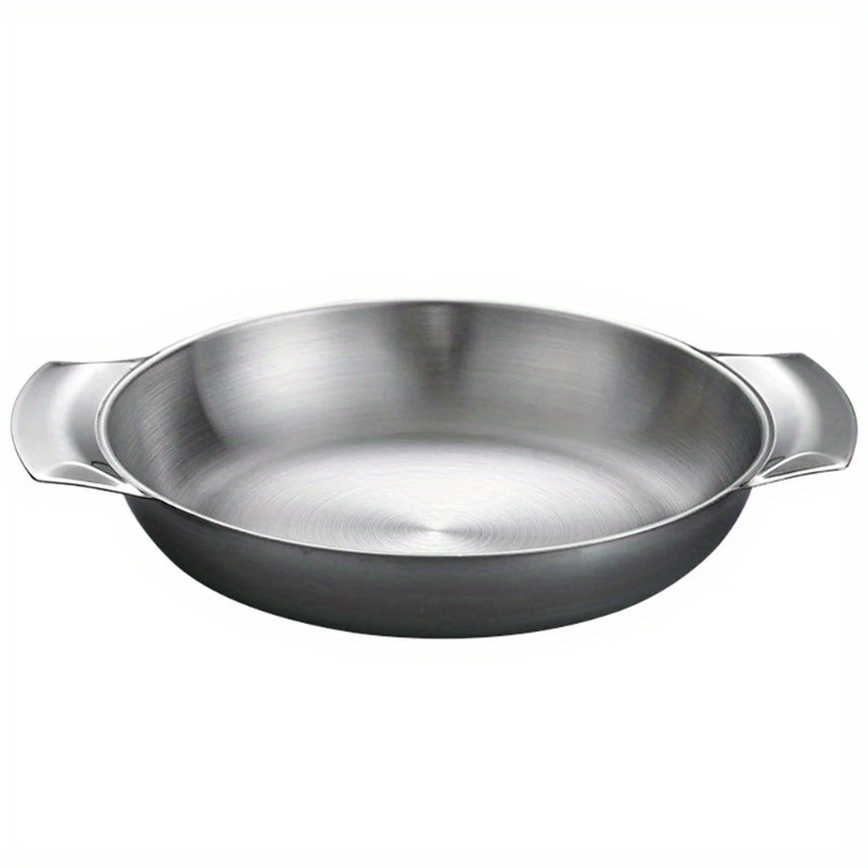 TEMU 1개 대형 헤비 듀티 스테인리스 스틸 프라이팬 (이중 손잡이) - 논스틱, 내열성, 균일한 열 분산, 해산물, 핫팟, 볶음, 요리용 - 간편한 세척 & 내구성 주방 조리 기구, 핫팟 요리, 모던 주방용품