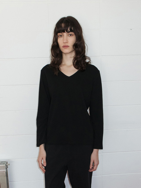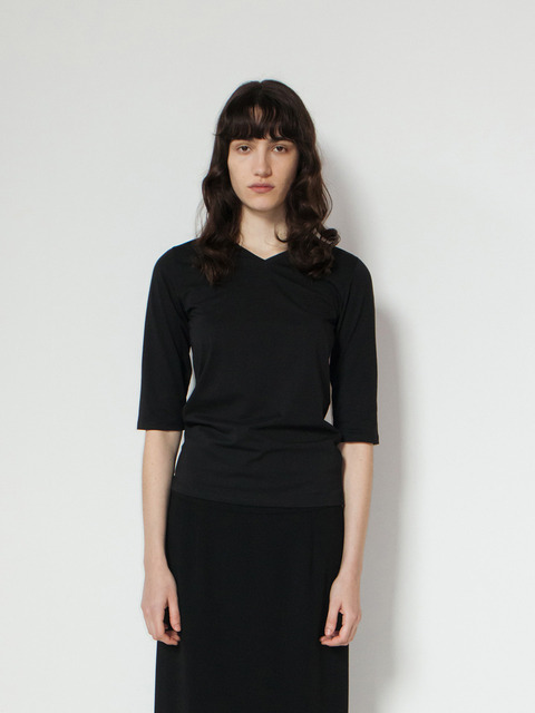 [리포스] 쓰리쿼터 슬리브 브이넥 티셔츠 (블랙)