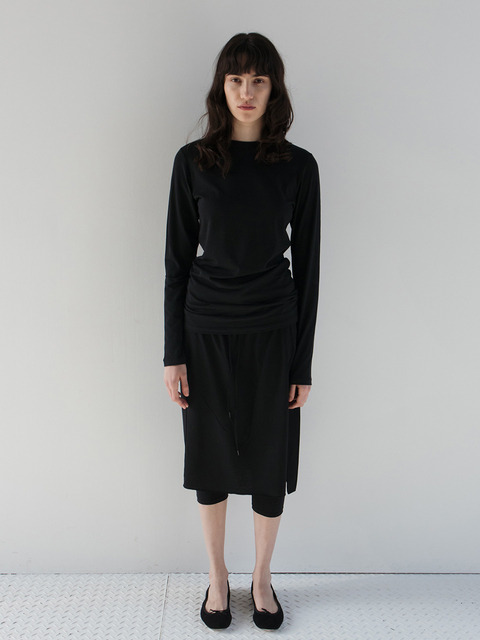 [리포스] 코튼 져지 미디 스커트 (블랙)