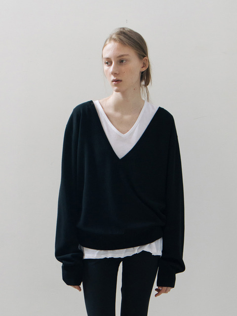 [리포스] 에센셜 딥 브이넥 니트 (블랙)