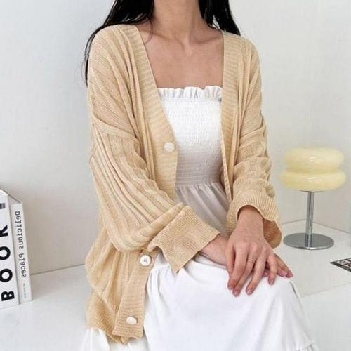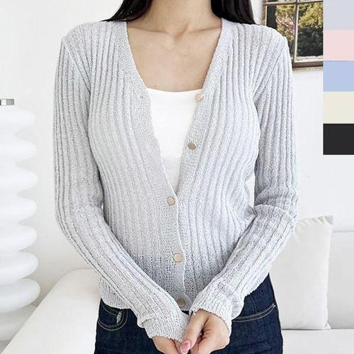 [에이치플러스몰]긴팔 여자여름가디건 여성 가디건 1P 린넨 골지 니트