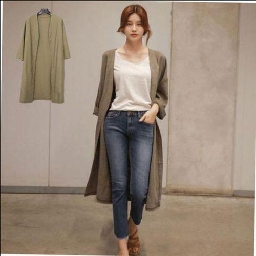 [에이치플러스몰]린넨가디건 베이직 린넨바람막이 롱가디건 간절기가디