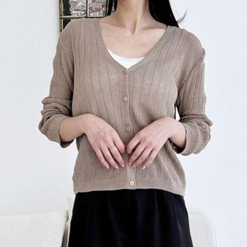 [에이치플러스몰]여자여름가디건 1P 브이넥 긴팔 린넨 니트 가디건