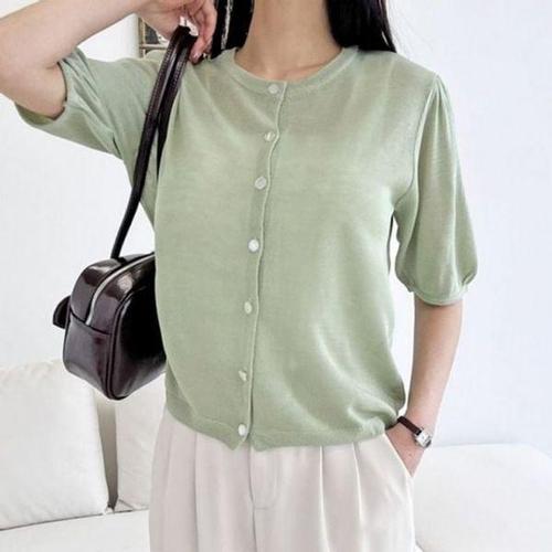[에이치플러스몰]여성 린넨 추천 가디건 얇은 꾸안꾸 퍼프 여자 반파