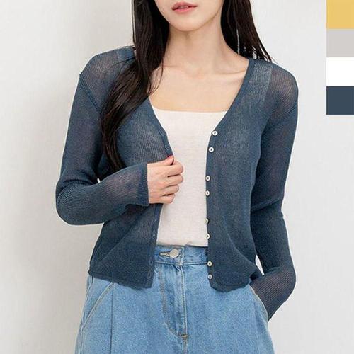 [에이치플러스몰]린넨 여성 데일리 얇은 가디건 클래식 시스루 여자 긴