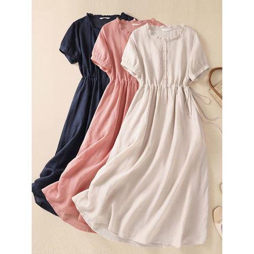 [셀럽하우스]30대 YSTC2974 여자30대원피스 린넨반팔원피스 체형 커버 롱셔