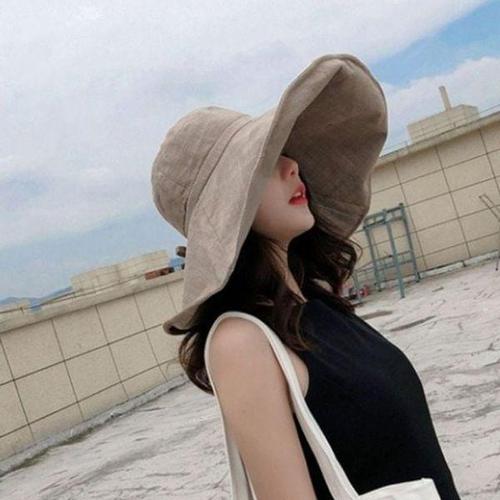 [QNR05W28]와이드 린넨 여성 자외서차단 빅 챙모자