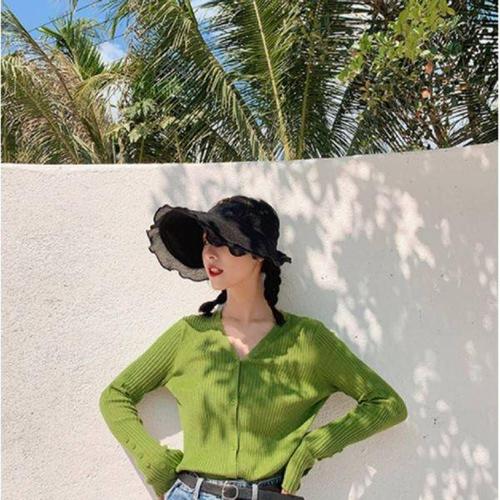 여성 벙거지 모자 린넨 영국 복고풍 고급 봄여름 우아한 꽃 선 스크린 태양 대마 원사