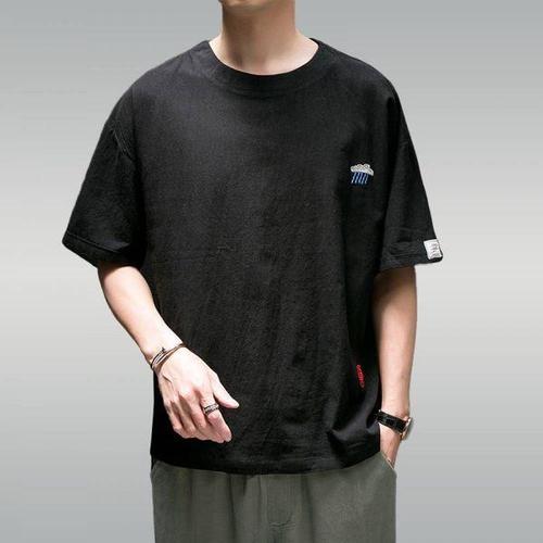 [에이치플러스몰]남자 반팔티셔츠 린넨 라운드 오버핏