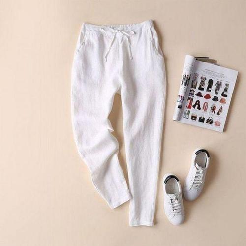[에이치플러스몰]린넨 베이직 여성 여름 바지 올데이 배기 핏 쿨 밴딩