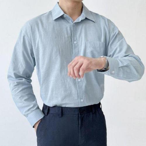 남성 카라 린넨 긴팔 면마 기본 셔츠