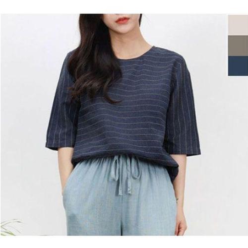 youka 아이스 린넨 스트라이프 반팔 티셔츠