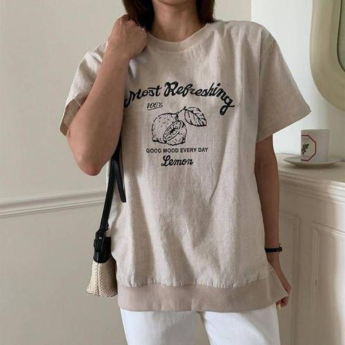 샵앤) 레몬국산 여성루즈핏 린넨 면반팔티 BY.G-WSH-3524-화이트