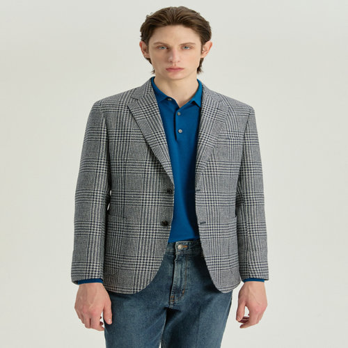 [CANONICO] 네이비 울실크린넨 글렌체크 자켓 (DMJA6A001N2)