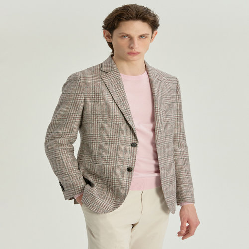 [DI PRAY] 페일핑크 울실크린넨 클래식 체크 자켓 (DMJA6A033P4)