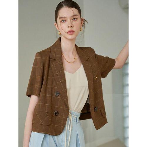 [지센]잔체크 린넨 더블버튼 반팔 자켓 LFJKO404_SB