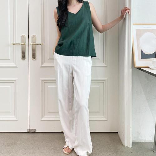 [샵앤]국산 여성 린넨 V넥 무지 베이직 민소매 나시티 SML-WSH-4588-화이트