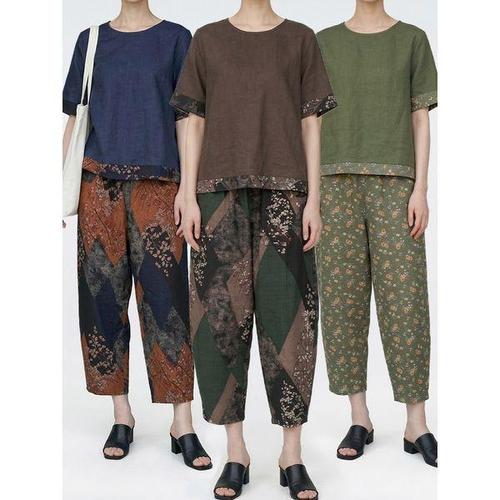 [스타일준]여자 여름용 린넨 티셔츠 마바지 상하세트