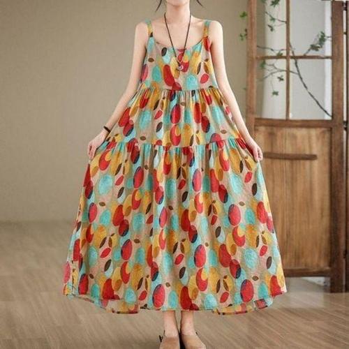 [모노무드]모노무드 xmfl-2 여성 여름 원피스 린넨 땡땡이 데일리 나염 셔링