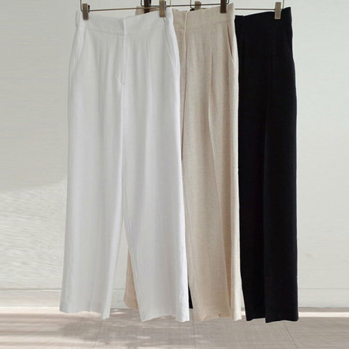 [힙제이]여름팬츠 린넨 9부 슬랙스 일자 9부바지 여성 면혼방 냉장고바지