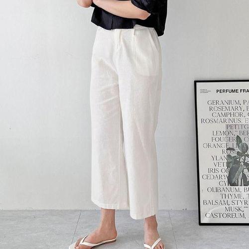 [에이치플러스몰]여성 9부 린넨 통바지 1P 여름 데일리 얇은 면바지