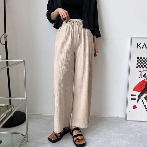 [에이치플러스몰]여성 린넨 밴딩 통바지 1P 여름 얇은 데일리 면바지