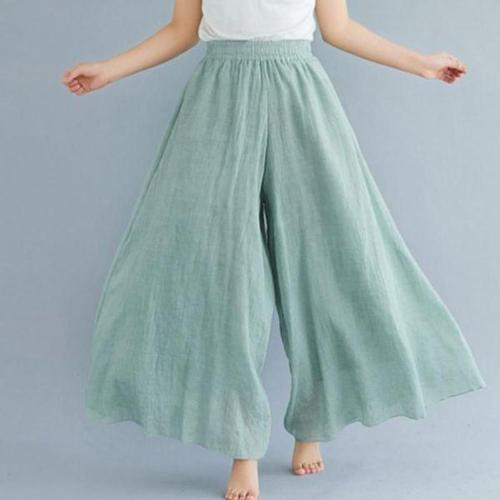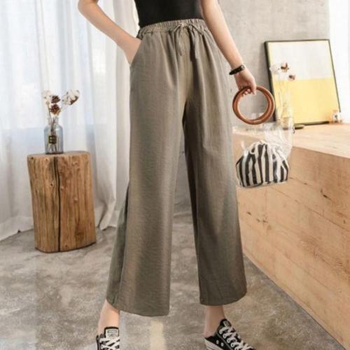 여성 시원 편안 면 마 소재 오버핏 바지 프리미엄 소프트 캐주얼 린넨 와이드 팬츠