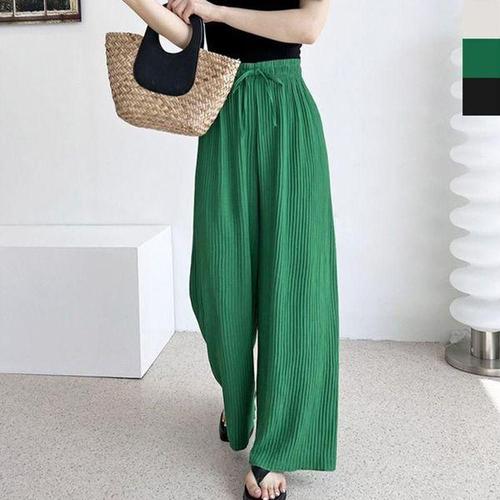 [에이치플러스몰]여성 여름 데일리 밴딩 와이드 팬츠 린넨 찰랑 통바지
