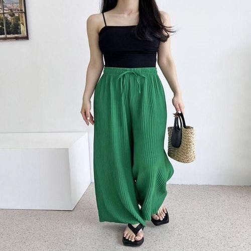 [에이치플러스몰]주름 플 와이드팬츠 여성 쿨린넨 여름
