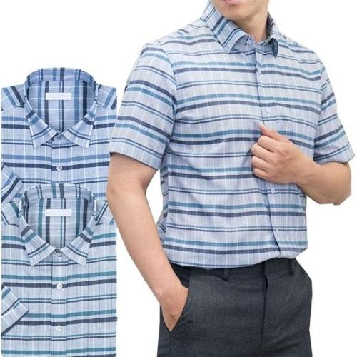 구김적은 린넨스타일 시원한 통풍 체크 반팔와이셔츠